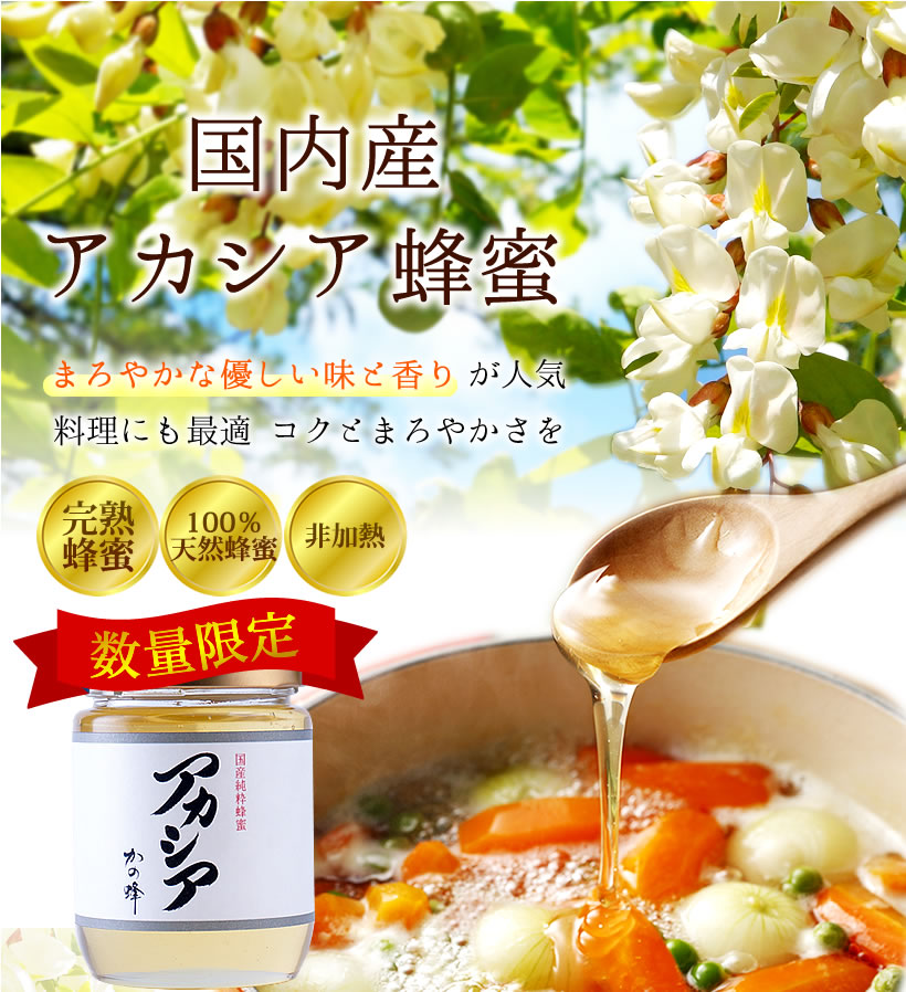 | 原材料 | 国産アカシア蜂蜜(はちみつ) |