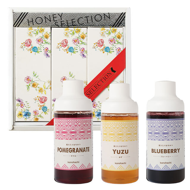 ・ハニーザクロ 500g×1本 ・ハニーブルーベリー 500g×1本 ・ゆず 500g×1本 |