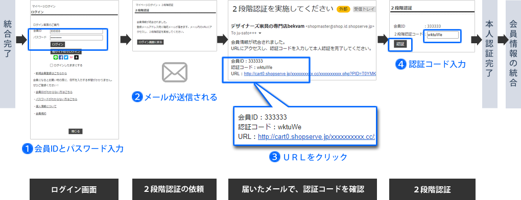 統合対象のお客様はセキュリティ観点より、初回のみ2段階認証でのログインを実施いただきます。