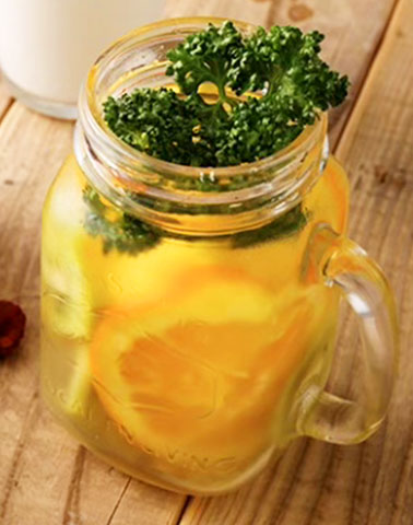 上記のフルーツとパセリをスライスして500ミリリットルの水にハチミツと共に入れます。